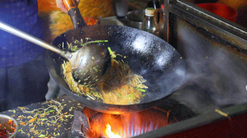 新鲜菌菇和米粉爆炒……你会不会排着队也要抢一碗?