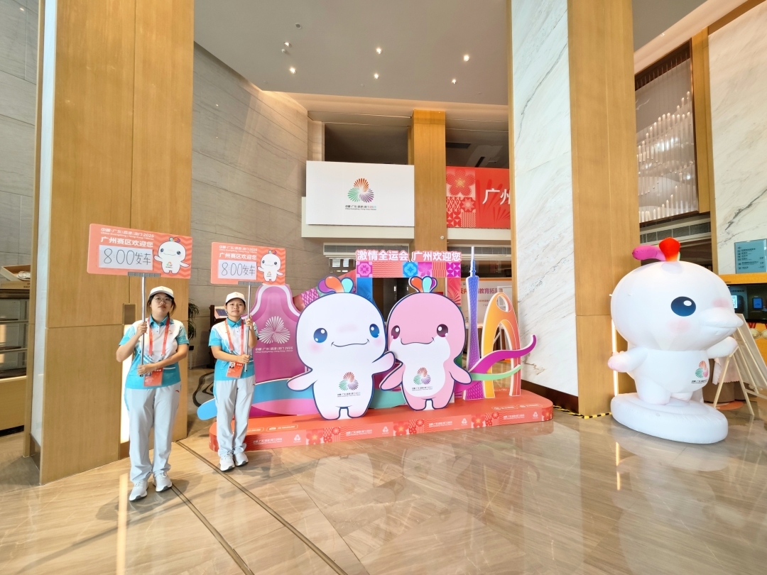 吉祥物景观小品、设置道旗、悬挂横幅……如今,除了广州翡翠希尔顿酒店、广州黄埔君澜酒店两家赛事接待酒店,在广州黄埔,各大关键点位均有浓浓的全运氛围。如黄埔体育中心、万达广场、区行政中心、黄埔军校旧址纪念馆等重点区域均强化了赛事氛围,提升了区域形象。